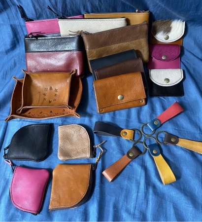 趣味で作った革小物です。キーホルダーからトートバックまでつくりました