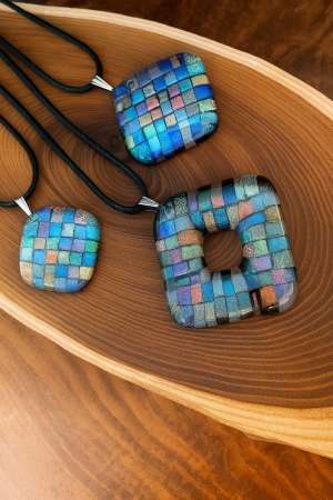 描いた絵、粘土のブローチとマグネット、樹脂のオブジェ
