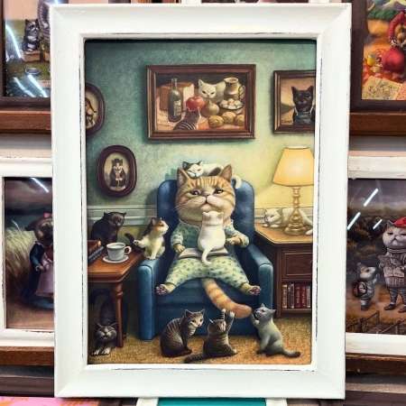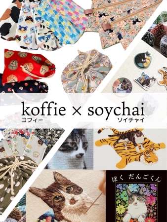 布小物、オリジナル刺繍作品とポストカード、原画、猫さんおもちゃなど。