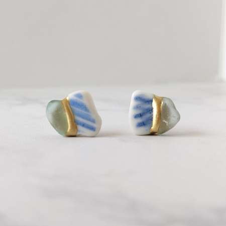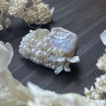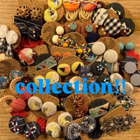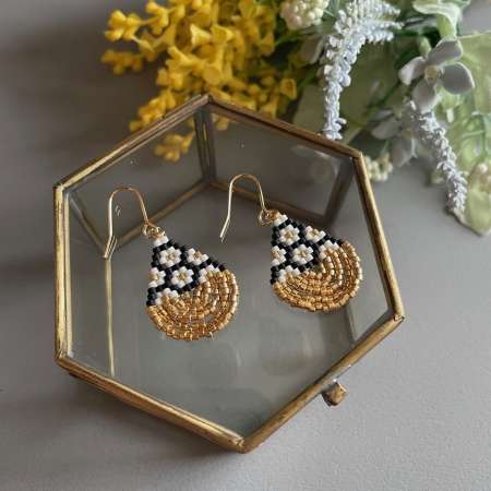 ガラスビーズを編み込んだ耳飾り、ブローチなど
