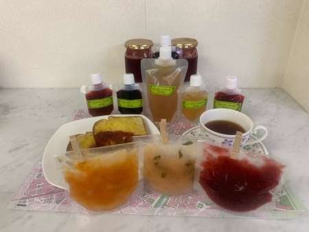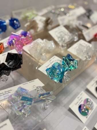 レジンピアス、ハムスターグッズ(ステッカー、缶バッチ)、ビーズアクセサリー、ドライフラワー、似顔絵販売
