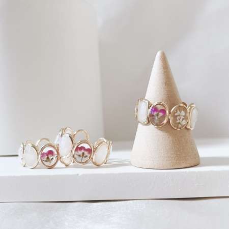 本物のお花を使用したアクセサリー インド刺繍リボンを使用したアクセサリーや小物