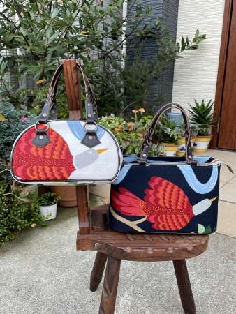 「持っているだけで楽しくなるバッグ」をコンセプトに北欧やアメリカの色鮮やかなテキスタイルで作ったオリジナルバッグ。職場を明るくするA4トートバッグ、A4リュックなど。