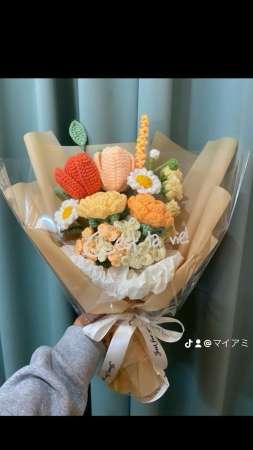 編み物の花やキーホルダー、手刺繍をあしらった布製品の販売