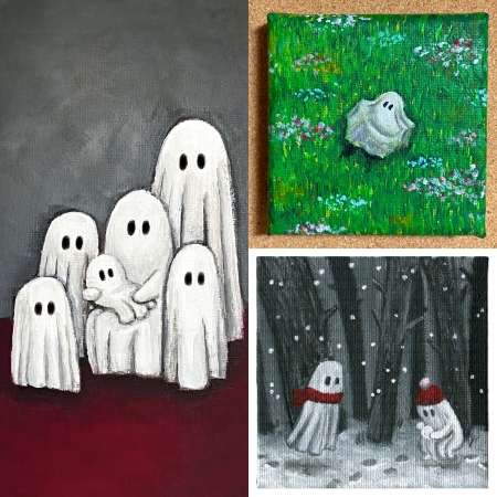 原画、ミニ原画、原画キーホルダー、フィギュア、粘土マグネット、羊毛フェルトフィギュア、ブローチ、ポストカード、ステッカー
