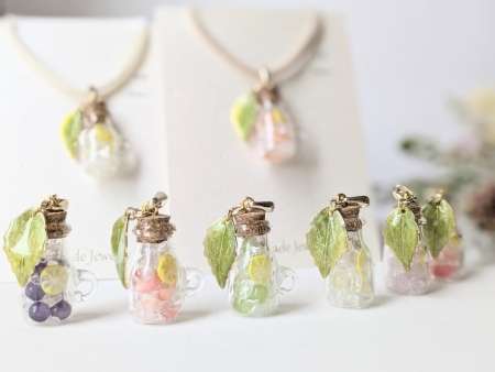 癒しに繋がるフルーツモチーフアクセサリーを販売しています 素材 ガラス、天然石、樹脂粘土、レジン等