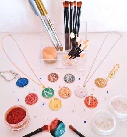 パウダーを振りかけて作るイニシャルチャームペンダント
