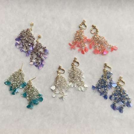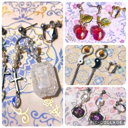 ビーズ刺繍の耳飾りや揺れるアクセサリー、ブローチ、ポニーフックなど