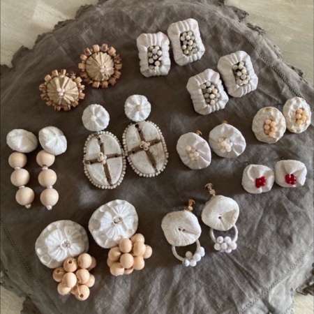 陶土と刺繍の装身具