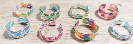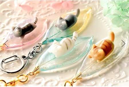 気温で色が変わったり結晶が増減するネックレス、スワロフスキーとビーズのブレスレット、本物の葉脈を使った簪やキーホルダーなど