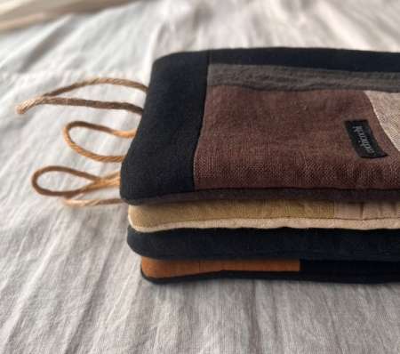 バッグや鍋掴み、小さなコラージュのブローチなどをお持ちします。
