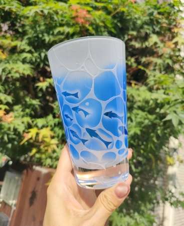 サンドブラスト機を使ってグラスにオリジナルのデザインの彫刻加工をしています。 酒器の徳利やぐい呑み、ワイングラスやタンブラーと幅広いグラスを扱っています。