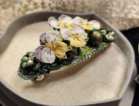 刺繍、タティングレース&ビーズ、リボンタティングで季節の花を表現したアクセサリーや小物等。