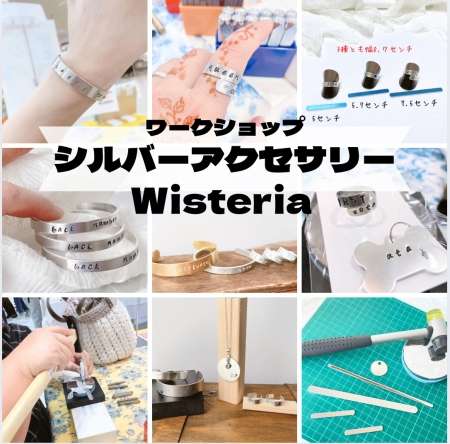 ワークショップ:シルバーアクセサリー&真鍮アクセサリー作り。お好きな英文字、絵文字を刻印してオリジナルのアクセサリー作り。大切な思い出の記念日や誕生日、お名前やメッセージなどをアクセサリーに文字入れ。 他、シルバー、真鍮アクセサリー、ワイヤーアクセサリー物販販売。