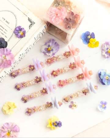 本物のお花を使用したアクセサリー インド刺繍リボンを使用したアクセサリーや小物