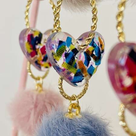 描いた絵、粘土のブローチとマグネット、樹脂のオブジェ