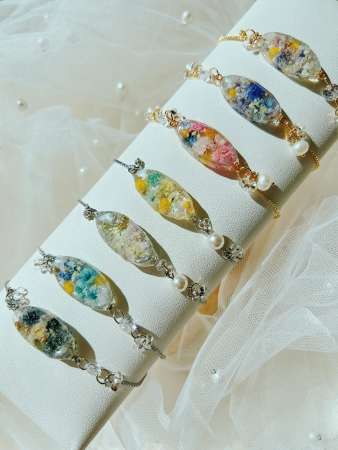 お花や琉球ガラスをつかったアクセサリーやキーホルダーなどの雑貨、フラワーアレンジメントなど