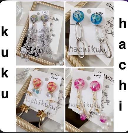 レジンピアス、ハムスターグッズ(ステッカー、缶バッチ)、ビーズアクセサリー、ドライフラワー、似顔絵販売