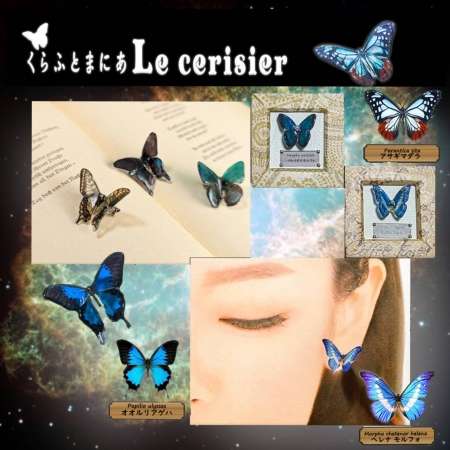 リアルで透き通った蝶々のピアス、イヤリング、ブローチ、ピンバッジ 追視する目玉のアクセサリー、バッグチャーム 大きなどんぐりチャーム