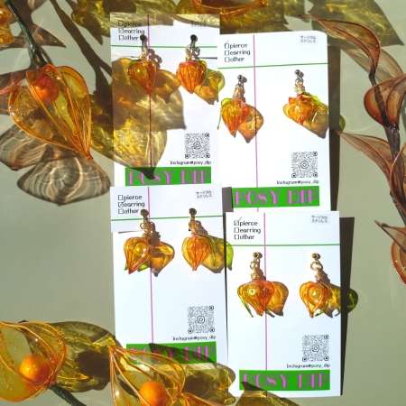 ガラスビーズを編み込んだ耳飾り、ブローチなど