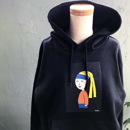 オリジナルイラストのプリントTシャツ、パーカー、ミシン刺繍のバッグやタフティングによるラグ等