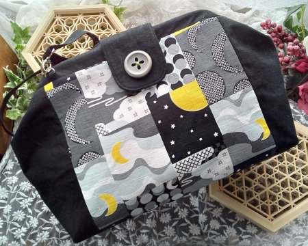 和柄生地を使った鞄とがま口、和柄のブローチを作っています。