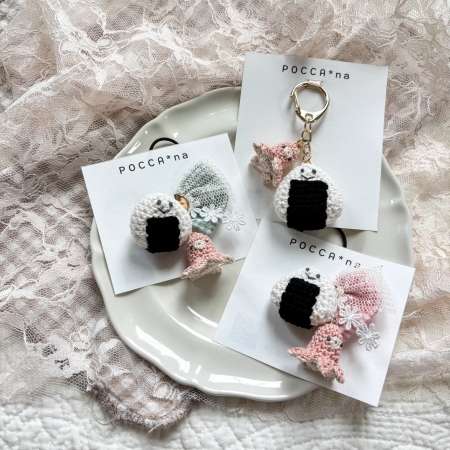 編み物の花やキーホルダー、手刺繍をあしらった布製品の販売