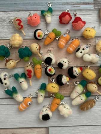 原画、ミニ原画、原画キーホルダー、フィギュア、粘土マグネット、羊毛フェルトフィギュア、ブローチ、ポストカード、ステッカー