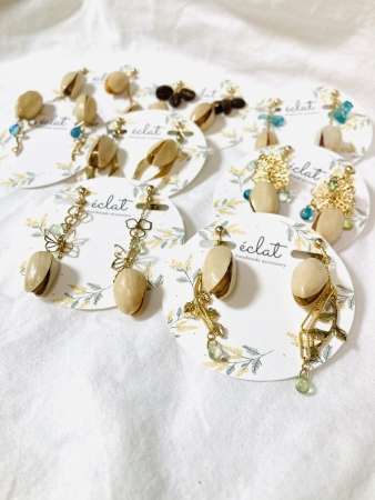 そのままの木の色を生かした木のアクセサリー(ペンダント、ネックレス、ピアス、イヤリング、ブローチ、ストラップ、バックチャーム、一輪挿し、レジン)