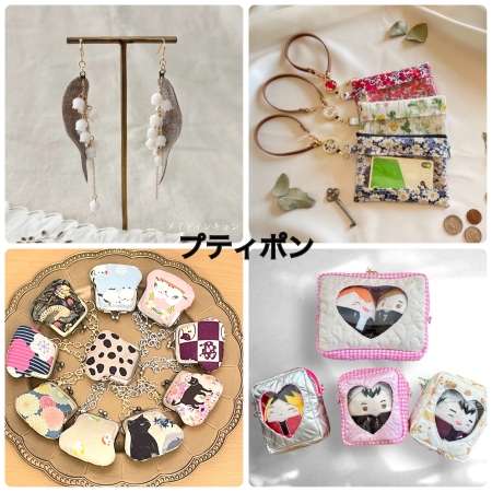 布小物(トートバッグ、ポーチ、ペンケース、ヘアゴム、ブローチなど)です。