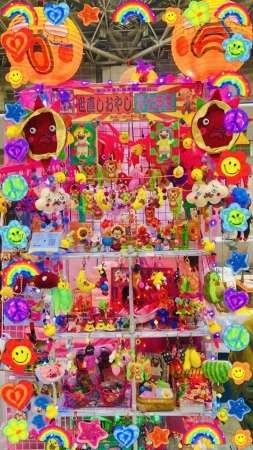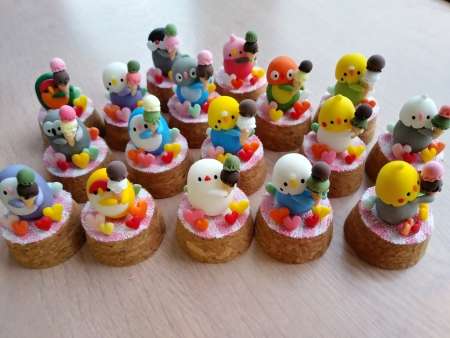 鳥やアイスが入った小瓶、ぬいぐるみ