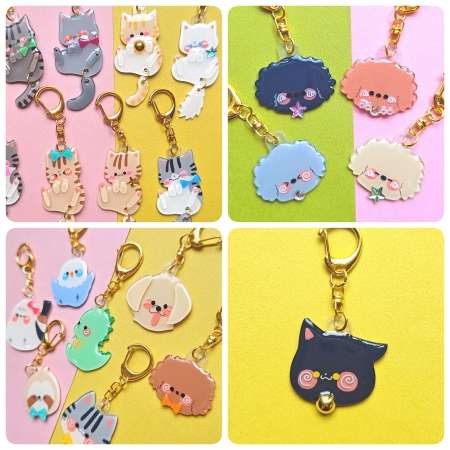 プラ板レジンで製作した、アニマルモチーフのストラップやブローチ、アクセサリーなど