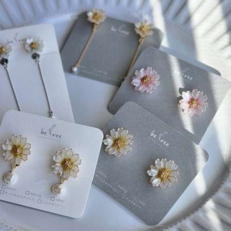 ビーズ刺繍の耳飾りや揺れるアクセサリー、ブローチ、ポニーフックなど