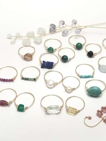 天然石とワイヤーを使ったアクセサリーとビーズフラワーなど