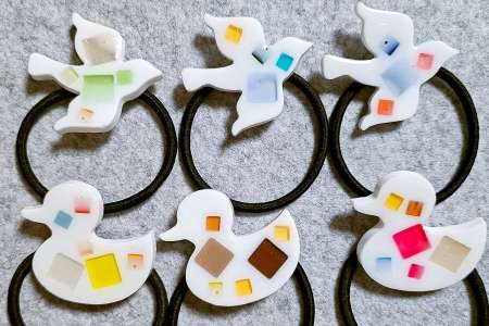 布等のテキスタイルやレジン樹脂を使用した、ヘアゴムやバレッタ等のヘアアクセサリーや、イヤリングやピアス等のアクセサリー等