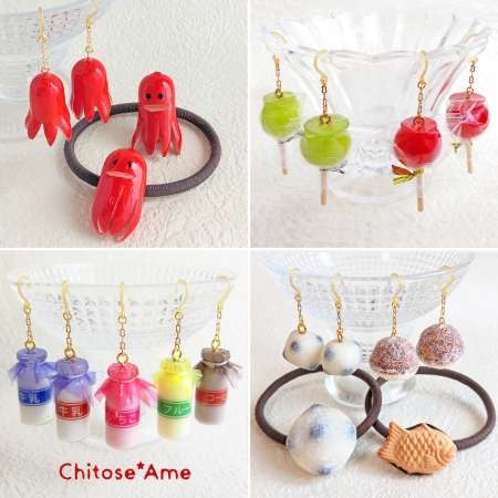 たいやき・牛乳瓶など和モチーフや昭和レトロなフェイクフード(フェイクスイーツ)アクセや雑貨