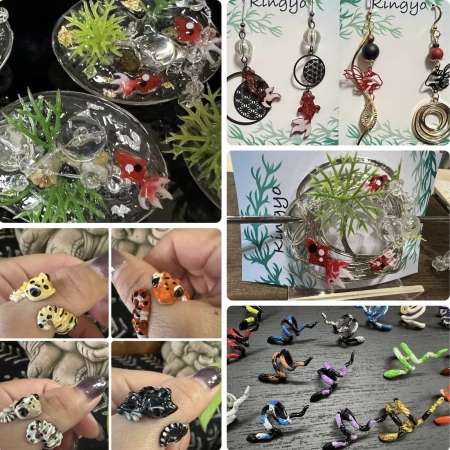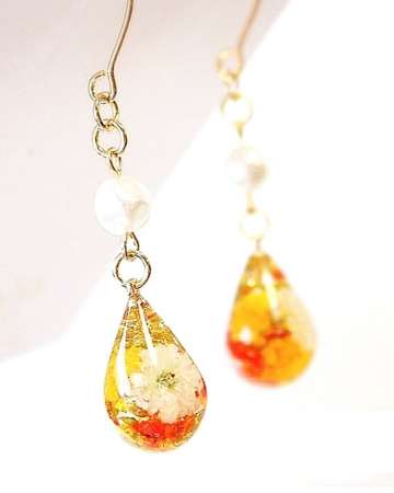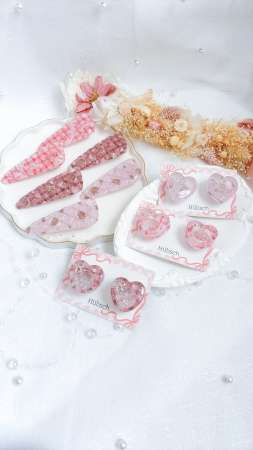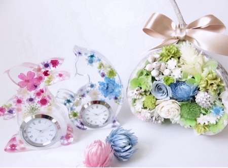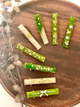つまみ細工を使った髪飾りや、ドライフラワーや水彩絵具を使ったレジンアクセサリーを制作しています。