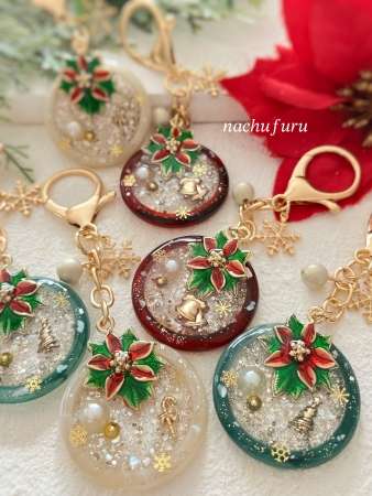 フラワークロック、クリスマスアレンジメント、ブッダナッツアレンジメント、イニシャルチャーム、レザーチャーム