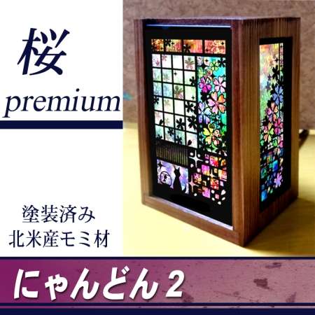 オリジナルの猫の油絵を用いたイラストフィルム、小さな照明「にゃんどん2桧」「にゃんどん2プレミアム」など