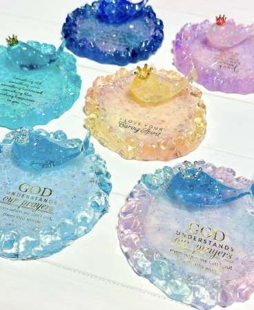 かわいい動物や恐竜、ロボットフィギュア、芸術的な バラやスズラン置物、更に新しく独特な世界観のジオラマをアクリルドームに封入した作品など新作中心に多種多彩40種類以上ご紹介いたします!グラデーションカラーで透明の作品や、金彩を施した華やかな作品は ご覧になるだけでも楽しめます!(╹◡╹) オリジナルデザイン、レジンで制作、彩色・研磨は手作業で制作しております。