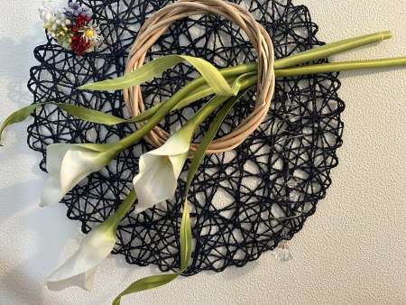 布花リース、布花、布花コサージュ、手編みコサージュ、手編み小物、布小物