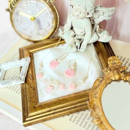 自作のワイヤーフラワーを使用したハンドメイドアクセサリー