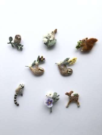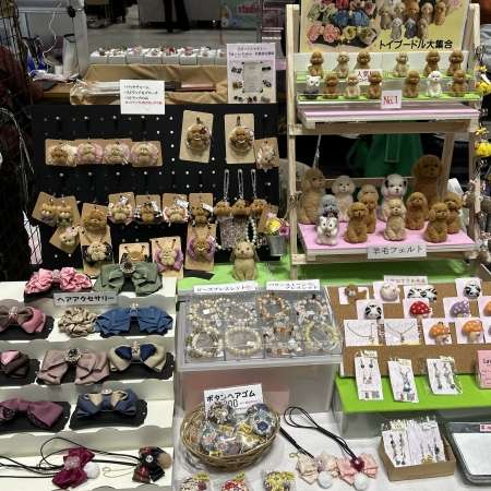 主に動物モチーフのあみぐるみキーホルダーやポーチなどの雑貨類と刺繍やビーズ等を使用したアクセサリー類