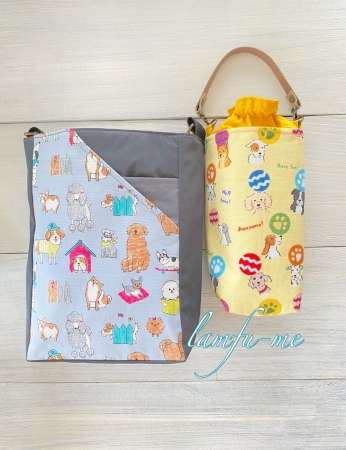 犬猫柄サコッシュと布小物 クリスタルガラスアクセサリー