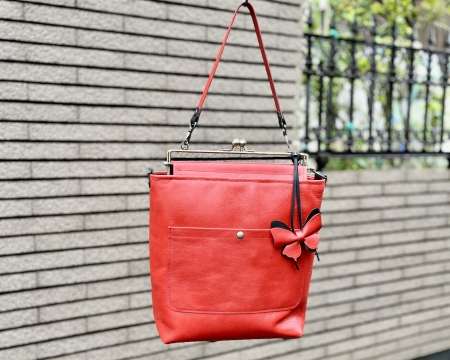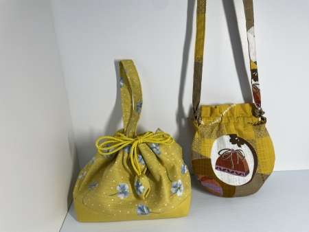 巾着袋 バネ口金の巾着袋ポーチ リボンのアクセサリー