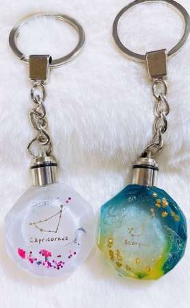 ビーズで作ったキーホルダーやリース、 ブレスレットなどのアクセサリー