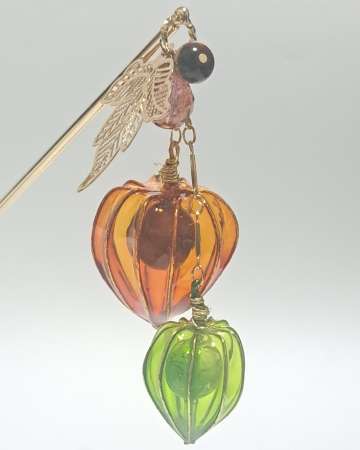 ディップアートの花や実を使った簪、耳飾り等のアクセサリー